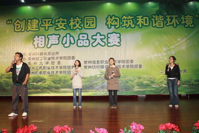 本次活動(dòng)以“創(chuàng)建平安校園、構(gòu)筑和諧環(huán)境”為主題,由科教城管委會(huì)、武進(jìn)區(qū)公安局主辦,輕院團(tuán)委承辦,其他五所院校團(tuán)委聯(lián)合協(xié)辦,活動(dòng)旨在進(jìn)一步掀起平安校園創(chuàng)建高潮,提高大學(xué)生安全防范意識(shí)和法律意識(shí),營造安全、穩(wěn)定、健康、文明、和諧的校園環(huán)境。政法委、公安局、電視臺(tái)及相關(guān)部門領(lǐng)導(dǎo)擔(dān)任了此次大賽的評(píng)委。