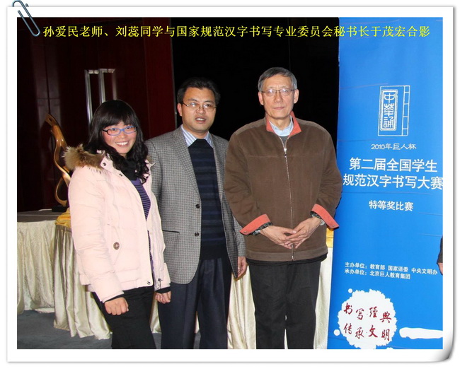 孫愛劉蕊與教育部規(guī)范漢字書寫專業(yè)委員會(huì)秘書長于茂宏合影