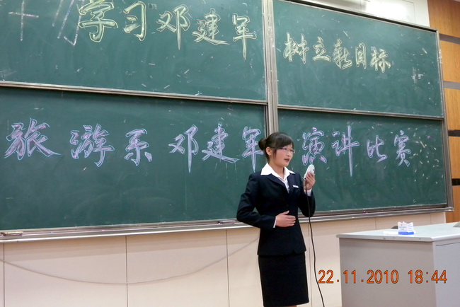 本次比賽共有12選手參加比賽,他們經(jīng)過了3輪選拔,憑借過硬的心理素質(zhì)和優(yōu)異的表現(xiàn),從各班級脫穎而出。比賽評分標(biāo)準(zhǔn)分為三項(xiàng):語言能力、演講內(nèi)容和現(xiàn)場表現(xiàn),采取10分制形式,設(shè)一等獎2名、二等獎2名、三等獎2名,優(yōu)勝獎6名。演講比賽中,各位選手圍繞“學(xué)習(xí)鄧建軍、樹立新目標(biāo)”為主題,以飽滿的激情、極富感染力的嗓音、恰到好處的肢體語言,用滿懷真摯的情感,激情洋溢的語言,暢談了對“鄧建軍精神”的深刻感悟,并結(jié)合了自己的實(shí)際情況,樹立新的目標(biāo),規(guī)劃自己的精彩人生。最終10旅游331的王冬梅同學(xué)和10酒管231的吳夢怡同學(xué)表現(xiàn)更勝一籌,榮獲一等獎,她們不但獲得了優(yōu)厚的獎品,還將代表系部參加學(xué)院的演講比賽,相信她們會發(fā)揮出高水平,取得好成績。