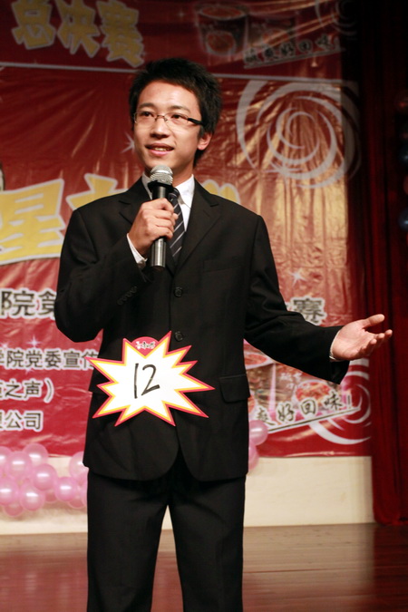 本次比賽共分三個環(huán)節(jié),分別是:我的名字你來記,才藝大比拼,模擬主持。通過層層選拔最終進入決賽的12名選手們可謂是各顯神通,充分地展現(xiàn)了自己在主持方面的才能。最終,來自模具系的12號選手周焱彬摘得桂冠,管理系的10號選手何超瀾獲得亞軍,電子系的9號選手錢夢瑤獲得第三名。