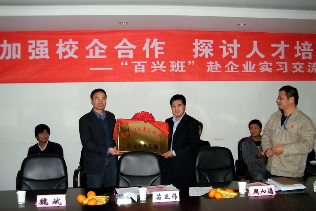 2010年11月30日,電子系08百興班赴中國(guó)百興集團(tuán)頂崗實(shí)習(xí)啟動(dòng)儀式暨百興集團(tuán)與電子系校企合作座談會(huì)在圖文樓1006舉行。由百興集團(tuán)總經(jīng)理茹正偉帶隊(duì)的6位專家、院黨委副書記張濤、市場(chǎng)部部長(zhǎng)葛天林、電子系領(lǐng)導(dǎo)及相關(guān)教師、08百興班全體學(xué)生參加了此次會(huì)議。電子系黨總支書記莊麗娟主持了會(huì)議。