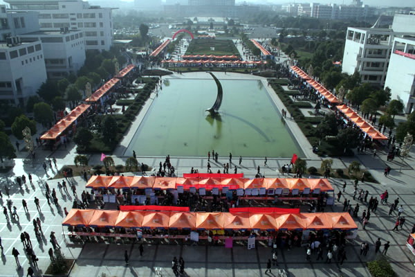 我院院黨委副書(shū)記張濤、市場(chǎng)部主任葛天林、副主任馮慶媛、市場(chǎng)部各位老師以及各系書(shū)記、輔導(dǎo)員等都到了現(xiàn)場(chǎng)。張副書(shū)記還陪同省教育廳朱衛(wèi)國(guó)副廳長(zhǎng)、省招生就業(yè)指導(dǎo)中心的胡建平書(shū)記一行溝通交流,并且與學(xué)生和用人單位交談。招聘現(xiàn)場(chǎng)人頭攢動(dòng),秩序井然,洽談會(huì)不僅吸引了科教城五所高職院校萬(wàn)余名2011屆畢業(yè)生的普遍參與,甚至其他院校和非畢業(yè)班學(xué)生前來(lái)提前體驗(yàn)。