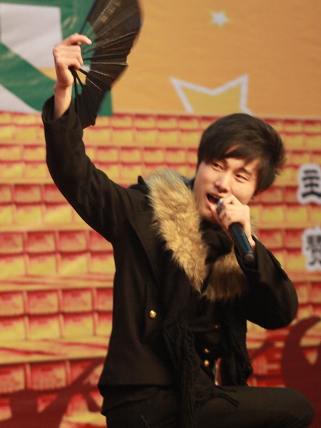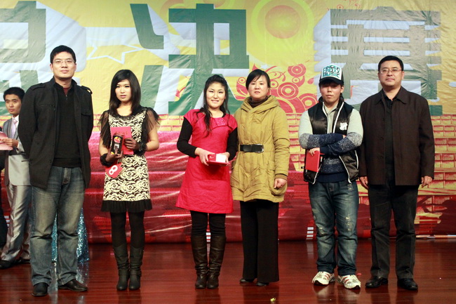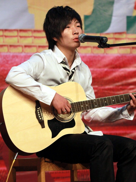 絢麗的舞臺雖伴有輕快的歌曲,但仍彌漫著硝煙的氣味,決賽的緊張氣氛并不因此而減弱。從復(fù)賽的眾多選手中脫穎而出的16位選手有了以往參加比賽的經(jīng)驗,他們顯得更加從容,更加自信。一幕幕經(jīng)典的銀幕形象通過選手們開場的演繹顯得形象而又生動。一曲《青春紀(jì)念冊》吟唱難忘的歲月,凝聚心頭不變的情節(jié)。一首首動聽的歌曲回蕩在報告廳中,同學(xué)們的喝彩聲此起彼伏,晚會更是高潮迭起。此次大賽的選手們不僅能說會唱,更是能演會跳,趙杰的《快樂崇拜》用簡單明快的舞蹈帶動著全場的氛圍;一首《青藏高原》讓李星星先聲奪人,蕩氣回腸;柏群忠自彈自唱的原創(chuàng)歌曲《二十年征途》,才藝雙馨,清新脫俗;呂超的《江南》、徐紹燕的《聽?!犯巧钋榭羁?,讓人投入其中難以忘懷;吶喊助威聲不時的從選手們的粉絲團(tuán)中傳來,現(xiàn)場氣氛十分活躍,而在絢爛的舞臺上選手們繼續(xù)綻放屬于他們的光彩,朱車成的一曲《新貴妃醉酒》更是把現(xiàn)場的氛圍推向了最高潮……
