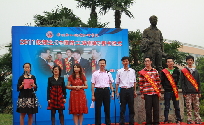 自2006年起,我院就將報(bào)告文學(xué)作家沈國(guó)凡先生撰寫(xiě)、中國(guó)工人出版社出版的《中國(guó)技工鄧建軍》一書(shū)作為教材發(fā)給新生閱讀,讓中國(guó)技工鄧建軍伴隨學(xué)生三年乃至一生。以后每年新生入學(xué)都將在鄧建軍塑像前舉行《中國(guó)技工鄧建軍》授書(shū)儀式,該儀式將成為我院以鄧建軍精神為核心的學(xué)校文化建設(shè)標(biāo)志性活動(dòng)之一。