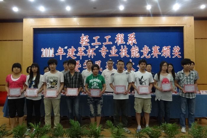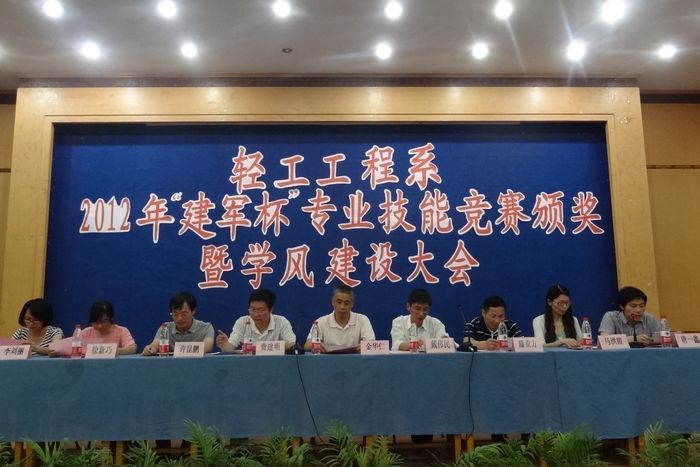 為大力弘揚(yáng)“愛(ài)崗敬業(yè),自強(qiáng)不息”的鄧建軍精神,在全系營(yíng)造濃厚的學(xué)習(xí)和競(jìng)賽氛圍。5月17日晚,輕工工程系在教學(xué)樓二號(hào)報(bào)告廳舉辦2012年“建軍杯”專(zhuān)業(yè)技能競(jìng)賽頒獎(jiǎng)暨學(xué)風(fēng)建設(shè)大會(huì)。系主任戴偉民、黨總支書(shū)記金華仁、副主任滕業(yè)方、副書(shū)記費(fèi)建明、高分子教研室主任許昆鵬、精化教研室主任馬洪霞、輔導(dǎo)員徐新巧、李劉麗老師和全系在校生出席了本次大會(huì)。