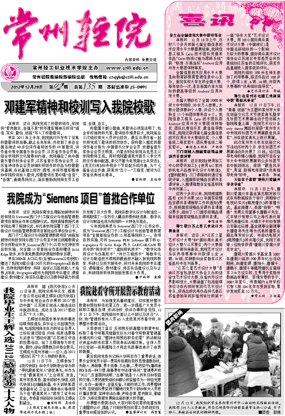 常州輕院報(bào)2012年12月28日 第92期 總第135期