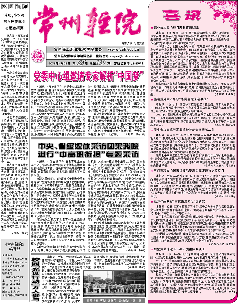 常州輕院報2013年4月28日 第96期 總第139期