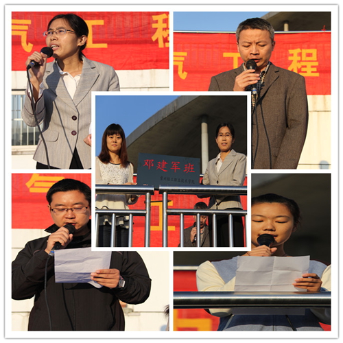 大會首先由黃祥源老師宣讀表彰決定及獲獎名單,莊麗娟等系領導和老師為獲獎代表頒獎。隨后12自動332班王玉同學代表獲獎學生發(fā)言,她分享了自己的學習方法和學習經(jīng)驗,給在場的學生樹立了一個勤奮好學、積極向上的良好榜樣。接著進行建軍班交接儀式,韓楊老師介紹了鄧建軍班的歷史,莊書記為12級建軍班授牌。