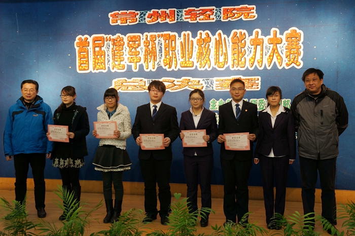 12月18日晚,常州輕院首屆“建軍杯”大學(xué)生職業(yè)核心能力大賽在教學(xué)樓報告廳圓滿結(jié)束,來自各系部的22支團隊經(jīng)過重重考驗,最終有6支團隊分獲大賽一、二、三等獎。學(xué)院領(lǐng)導(dǎo)對這次比賽十分重視,黨委書記楊興華、院長周大農(nóng)、黨委副書記張濤、副院長楊勁松親臨現(xiàn)場觀摩。教務(wù)處、團委、學(xué)工處、宣傳部部門負責人親自擔任評委。