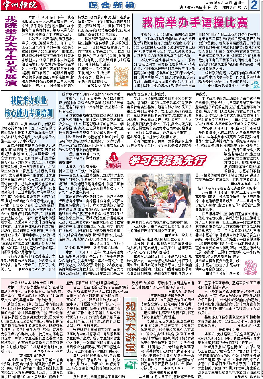 常州輕院報(bào)2014年4月28日第103期總第146期
