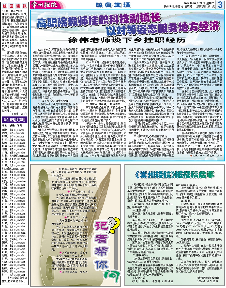 常州輕院報(bào)2014年10月28日第106期總第149期