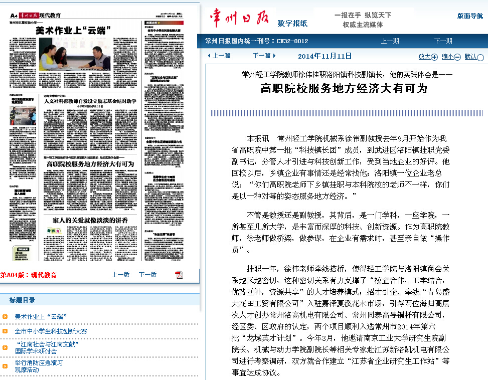 常州日報-常州輕工學(xué)院教師徐偉掛職洛陽鎮(zhèn)科技副鎮(zhèn)長 高職院校服務(wù)地方經(jīng)濟(jì)大有可為