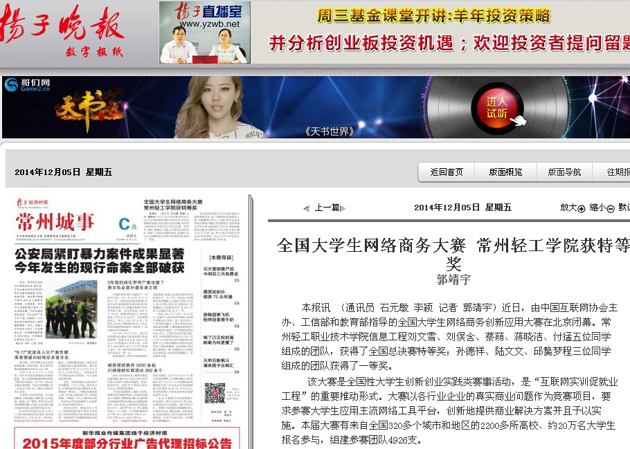 揚子晚報-全國大學生網(wǎng)絡(luò)商務(wù)大賽 常州輕工學院獲特等獎