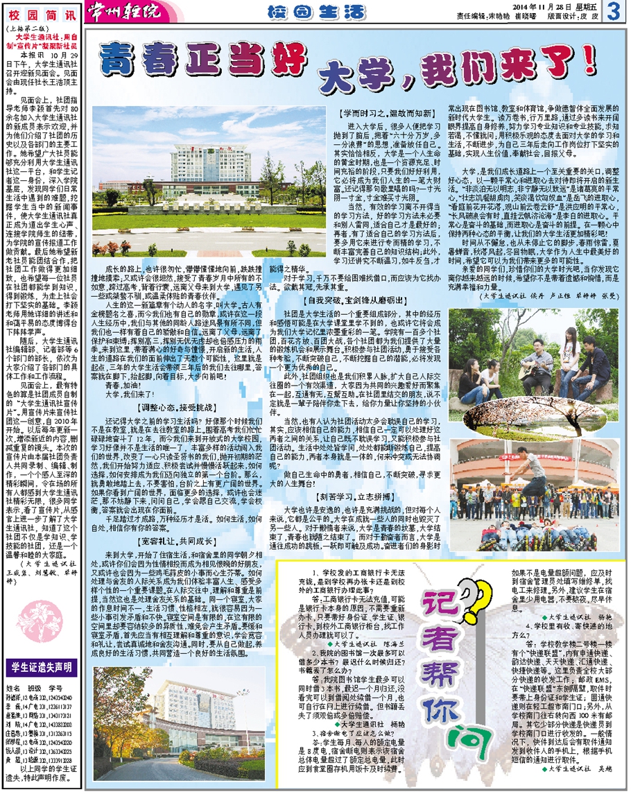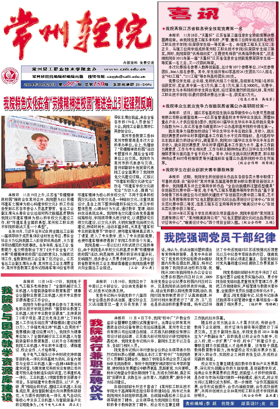 常州輕院報(bào)2014年11月28日第107期總第150期