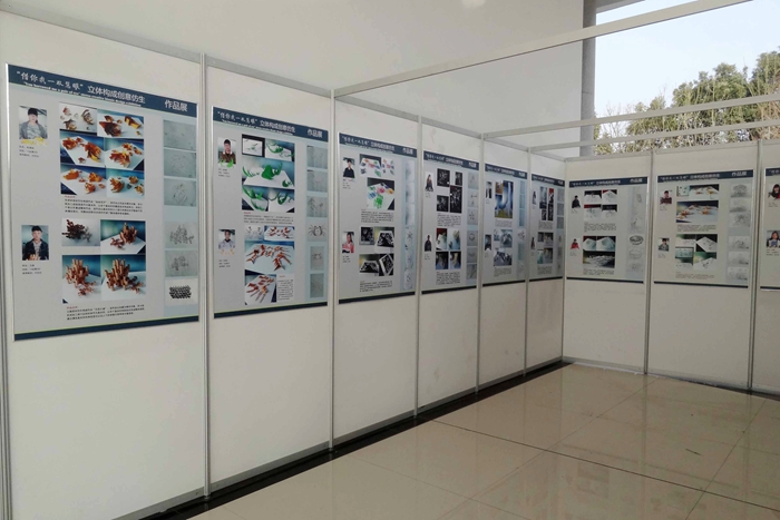 藝術(shù)設(shè)計(jì)系借遷入新教學(xué)場(chǎng)所的契機(jī),因地制宜著力打造藝術(shù)設(shè)計(jì)系特有的教學(xué)環(huán)境氛圍,舉辦了2014年度課程交流作品系列展。本次課程交流系列展覽前后持續(xù)了40天,涉及和涵蓋了藝術(shù)設(shè)計(jì)系3個(gè)教研室7個(gè)專業(yè)方向的18個(gè)班級(jí)。該系列展覽整合了文化創(chuàng)意設(shè)計(jì)專業(yè)群多門平臺(tái)基礎(chǔ)課和專業(yè)方向課,既有一門課程的平行班的橫向?qū)Ρ龋灿型粚I(yè)的縱向承接,集中展示了藝術(shù)設(shè)計(jì)系各門課程教學(xué)改革所取得的階段性成果,也反映藝術(shù)設(shè)計(jì)系學(xué)子孜孜以求、銳意創(chuàng)新的學(xué)習(xí)狀態(tài)。
