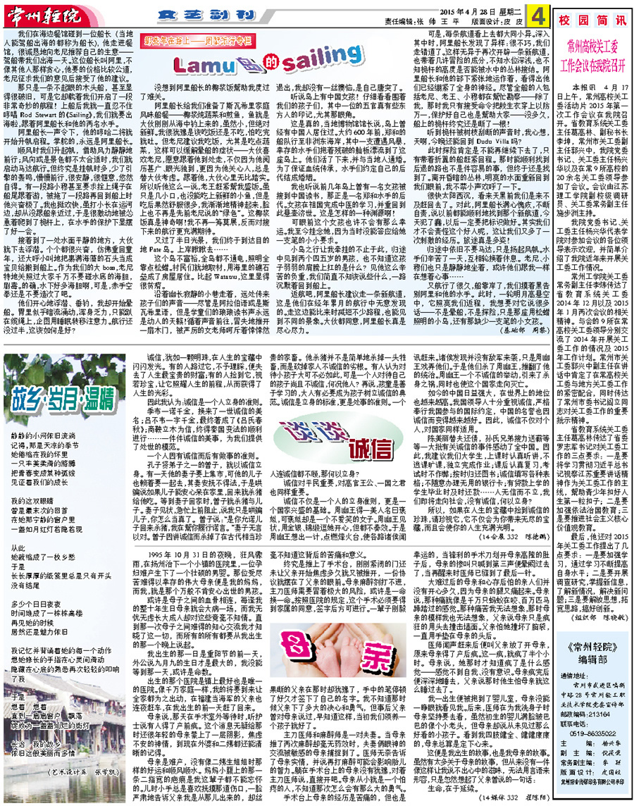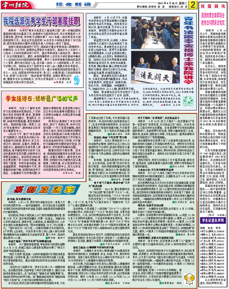 《常州輕院》報(bào)2015年4月28日第110期總第153期