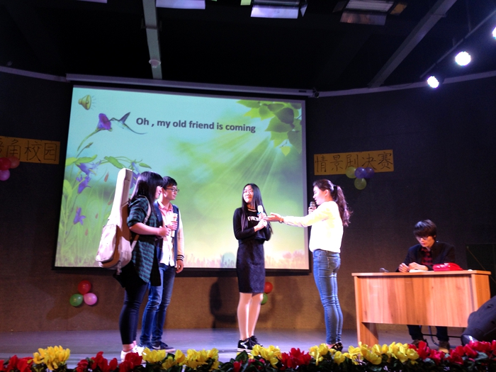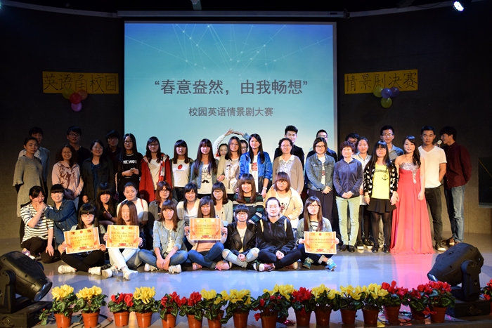 為了進一步調(diào)動學(xué)生學(xué)習(xí)英語的主觀能動性,營造濃厚的校園英語學(xué)習(xí)氛圍,以賽促學(xué)、以賽促技,提高同學(xué)們的交流和創(chuàng)作能力,經(jīng)管系商務(wù)英語教研室聯(lián)合英語角、英語寫作社團等舉辦了2015年“建軍杯”“盎然春意,由我暢想”校園英語情景劇比賽。經(jīng)過前期的充分準(zhǔn)備,5月11日在文體中心藝術(shù)中心成功舉辦了此次大賽,英語教研室主任侯志燕、專業(yè)老師胡朝慧、吳小亞、龍慧、吳敏、