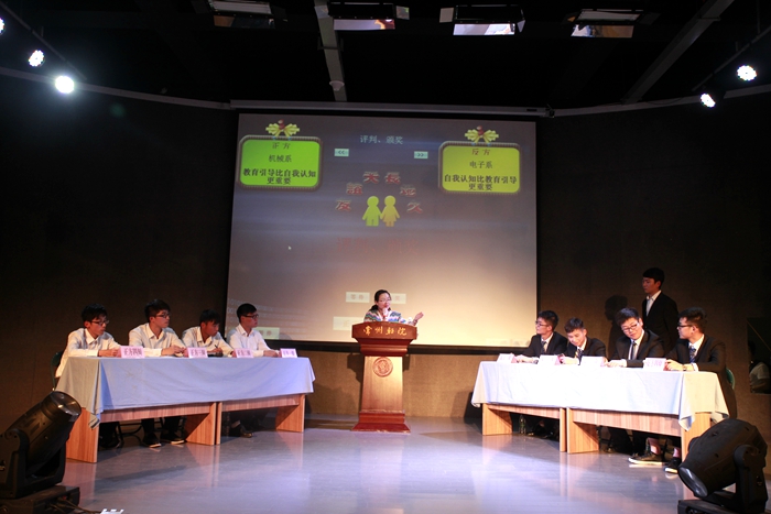 來自各系共八支代表隊(duì)參加了我院2015年“建軍杯”辯論賽,他們積極參與,充分準(zhǔn)備,奉獻(xiàn)了一場(chǎng)又一場(chǎng)精彩絕倫的比賽??倹Q賽上,電子系代表隊(duì)和機(jī)械系代表隊(duì)圍繞“教育引導(dǎo)與自我認(rèn)知哪個(gè)更重要”這一辯題展開辯論。在歷時(shí)一個(gè)多小時(shí)的激辯交鋒中,雙方辯手都圍繞著本方觀點(diǎn),拿出古今中外的典型例子,在申明自己立場(chǎng)的同時(shí),也頻頻發(fā)問把對(duì)方的觀點(diǎn)推倒,激烈的唇槍舌戰(zhàn)贏得了臺(tái)下觀眾陣陣掌聲。