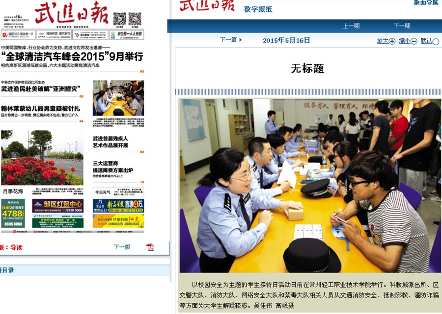 武進日報-以校園安全為主題的學(xué)生接待日活動日前在常州輕工職業(yè)技術(shù)學(xué)院舉行