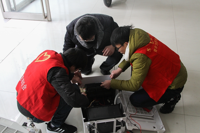 在電子系黨總支、團委的精心組織和關(guān)工委老師熱情幫助下,電子系團委書記韓楊、流光映紀拍客俱樂部指導老師張書貴、家電維修協(xié)會指導老師顧六平帶領(lǐng)家電維修社志愿者、學生黨員志愿者、拍客協(xié)會志愿者,于 12月14日 走進常州市長虹社區(qū),開展家電公益維修活動。????????