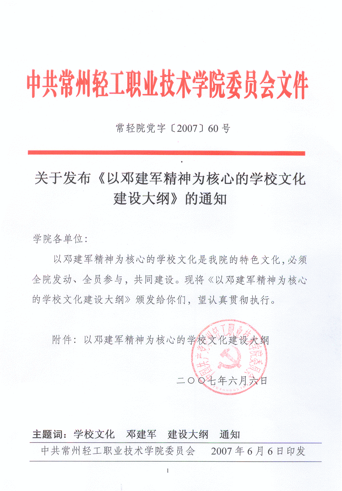 第二條 以鄧建軍精神為核心的學(xué)校文化是我院的特色文化。鄧建軍精神內(nèi)容是:愛(ài)崗敬業(yè),自強(qiáng)不息。