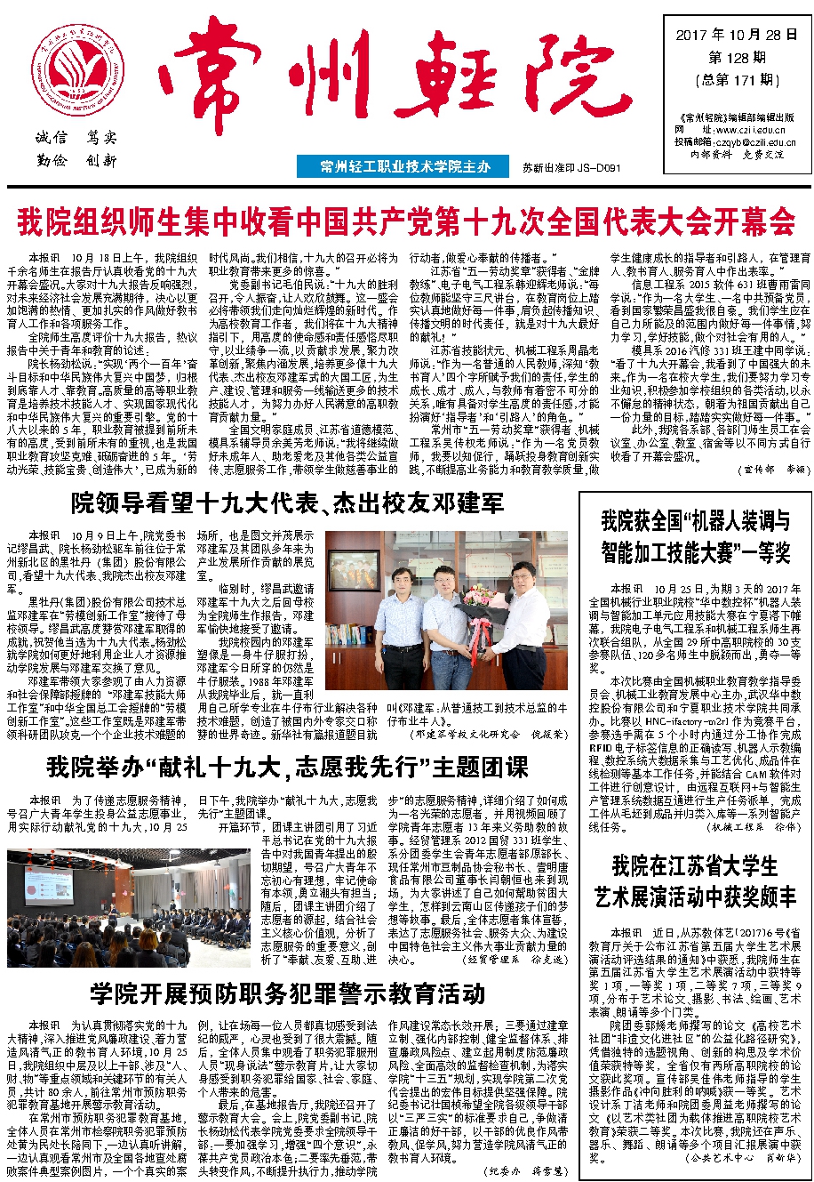 常州輕院報(bào)2017年10月28日第128期總第171期