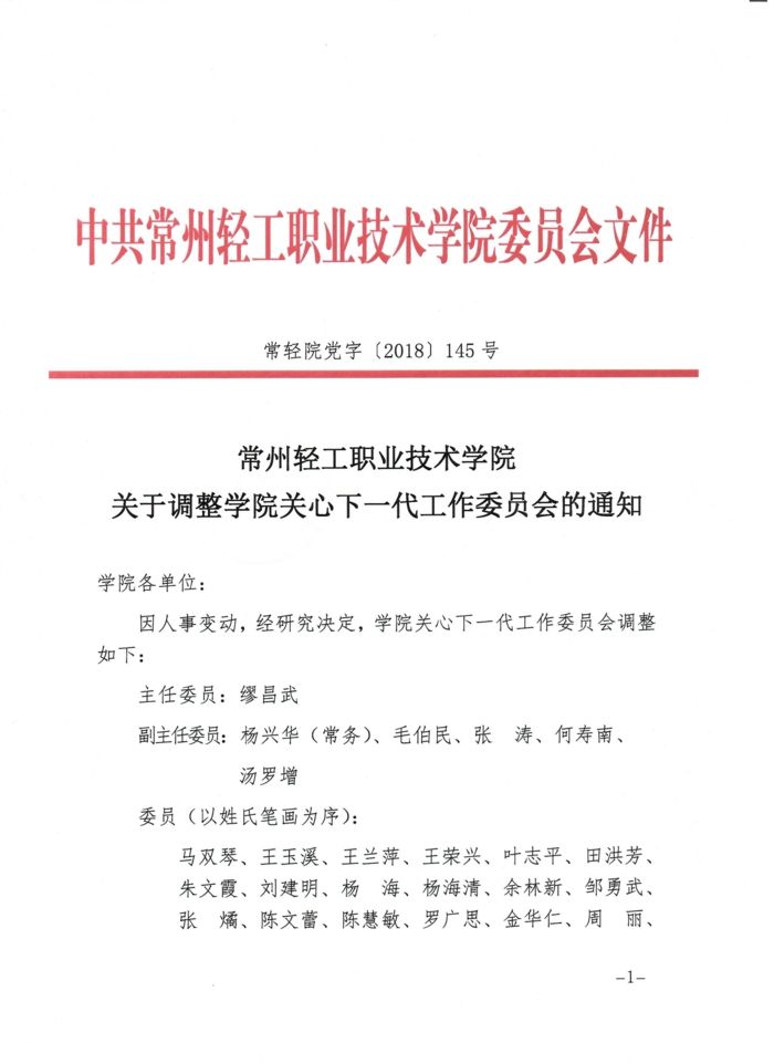 關于調(diào)整學院關心下一代工作委員會的通知