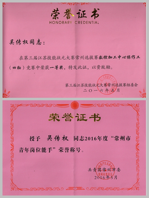 本次常州選拔賽全市共211名企業(yè)職工選手和106名學(xué)生選手參加了18個(gè)職業(yè)(工種)的競(jìng)賽。我院學(xué)生陸宏偉獲得學(xué)生組數(shù)控車工種競(jìng)賽的二等獎(jiǎng),16名二等獎(jiǎng)獲獎(jiǎng)選手被市選拔賽組委會(huì)給予獎(jiǎng)勵(lì)2000元并頒發(fā)獲獎(jiǎng)證書,并由市人社局晉升相應(yīng)高級(jí)工職業(yè)資格;該生是常州科教城各高校中唯一一名在本次選拔賽中獲得名次的高校學(xué)生。同時(shí),我院機(jī)械工程系教師白建波、倪貴華被組委會(huì)授予“優(yōu)秀指導(dǎo)教師”榮譽(yù)稱號(hào)。