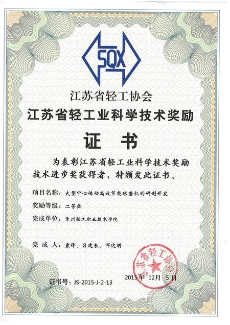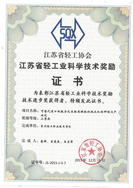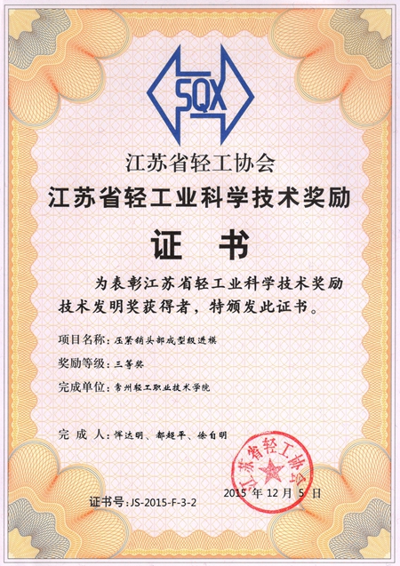 我院袁鋒教授申報(bào)的“大型中心傳動(dòng)高效節(jié)能球磨機(jī)的研制開發(fā)”“替代進(jìn)口的數(shù)字化生物病理組織脫水機(jī)的研制與產(chǎn)業(yè)化”兩個(gè)項(xiàng)目成果分獲2015年度江蘇省輕工協(xié)會(huì)科技進(jìn)步二、三等獎(jiǎng)。惲達(dá)明老師申報(bào)的“壓緊銷頭部成型級(jí)進(jìn)模” 獲2015年度江蘇省輕工協(xié)會(huì)科技發(fā)明三等獎(jiǎng)。