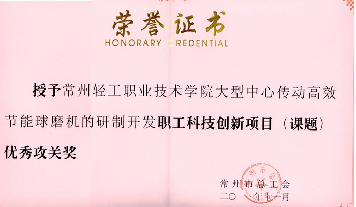 日前,從常州市總工會傳來好消息,我院袁鋒教授主持攻關(guān)的兩項科技項目“大型中心傳動高效節(jié)能球磨機(jī)的研制開發(fā)”和“可代替進(jìn)口的全自動封閉式數(shù)字化病理組織脫水機(jī)”獲得了常州市總工會職工科技創(chuàng)新項目優(yōu)秀攻關(guān)獎,常州9所高校共有3項科技項目獲得了此項大獎,我院就占了其中的2項。