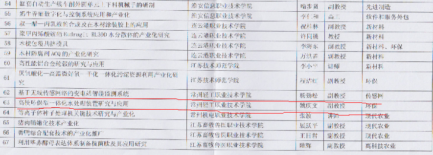 成果產(chǎn)業(yè)化推進項目的通知》,我院楊勁松副院長主持的《基于無線傳感網(wǎng)絡(luò)的變電站智能檢測系統(tǒng)》(傳感網(wǎng)類)和電子電氣工程系姚慶文副主任主持的《高效環(huán)保型一體化水處理裝置研究與應用》(環(huán)保類)兩項高校成果產(chǎn)業(yè)化推進項目獲得省教育廳科技立項。今年,在全院教師的共同努力下,我院共有18個科技項目獲得了省市科技立項,科研水平有了較大提高,這些科研項目與科研成果將對我院的專業(yè)建設(shè)和師資隊伍建設(shè)產(chǎn)生較大的引領(lǐng)與推進作用,為2011的評估提供強有力的支撐。