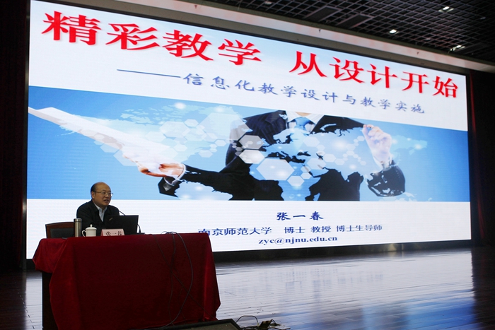 4月4日上午,我校全體教師齊聚一堂,共同聆聽南京師范大學(xué)繼續(xù)教育學(xué)院院長、博士生導(dǎo)師張一春教授題為“精彩教學(xué),從設(shè)計開始——信息化教學(xué)設(shè)計與教學(xué)實(shí)施”的講座。學(xué)校副校長蔣新萍出席并主持活動。