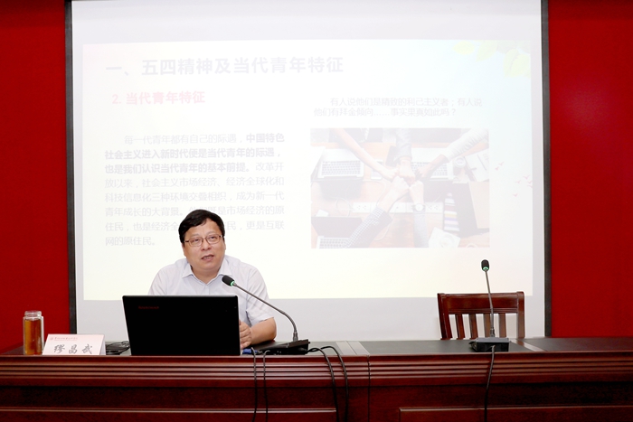繆昌武圍繞“五四精神及當代青年特征”“青年為什么要發(fā)揚奮斗精神”“青年該如何發(fā)揚奮斗精神”三個方面,結(jié)合學校在改革發(fā)展中取得的新成就,用鮮活的事例教育廣大青年學生繼續(xù)發(fā)揚五四精神,堅持大歷史觀,明辨是非,腳踏實地,在實現(xiàn)中國夢的生動實踐中放飛青春夢想,在為人民利益的不懈奮斗中書寫人生華章。