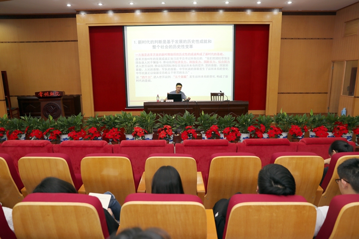 黨的十九大把習(xí)近平新時(shí)代中國(guó)特色社會(huì)主義思想確立為黨必須長(zhǎng)期堅(jiān)持的指導(dǎo)思想并寫(xiě)入黨章,十三屆全國(guó)人大一次會(huì)議通過(guò)的憲法修正案把習(xí)近平新時(shí)代中國(guó)特色社會(huì)主義思想載入憲法,實(shí)現(xiàn)了黨和國(guó)家指導(dǎo)思想的與時(shí)俱進(jìn)。6月19日,副校長(zhǎng)吳麗云為大學(xué)生作了題為“深入學(xué)習(xí)和貫徹習(xí)近平新時(shí)代中國(guó)特色社會(huì)主義思想”的講座,此次講座是校領(lǐng)導(dǎo)深入大學(xué)生宣講黨的十九大精神系列講座的第五講。