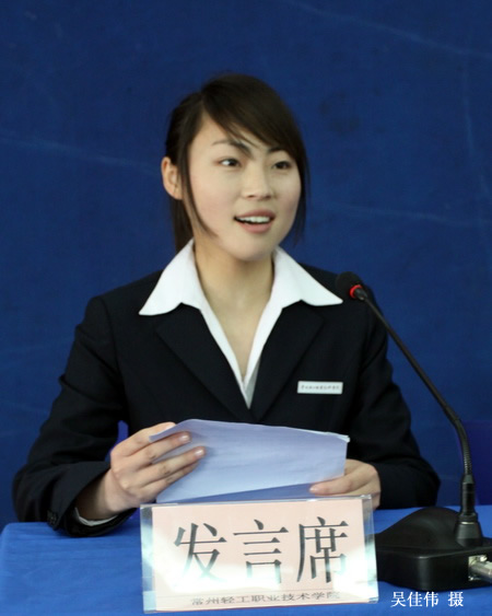 參賽選手代表陳歡同學(xué)發(fā)言