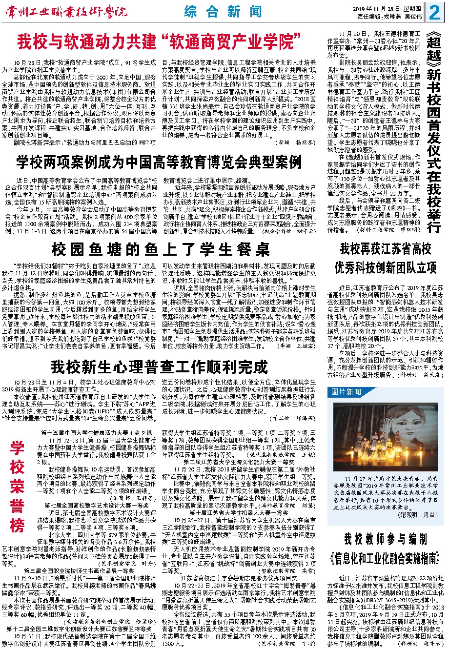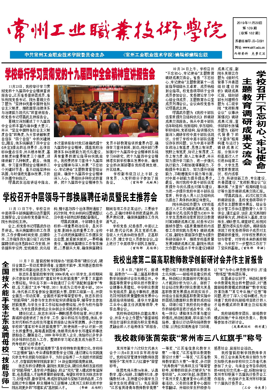 常州工業(yè)職業(yè)技術(shù)學(xué)院報2019年11月28日第139期總第182期