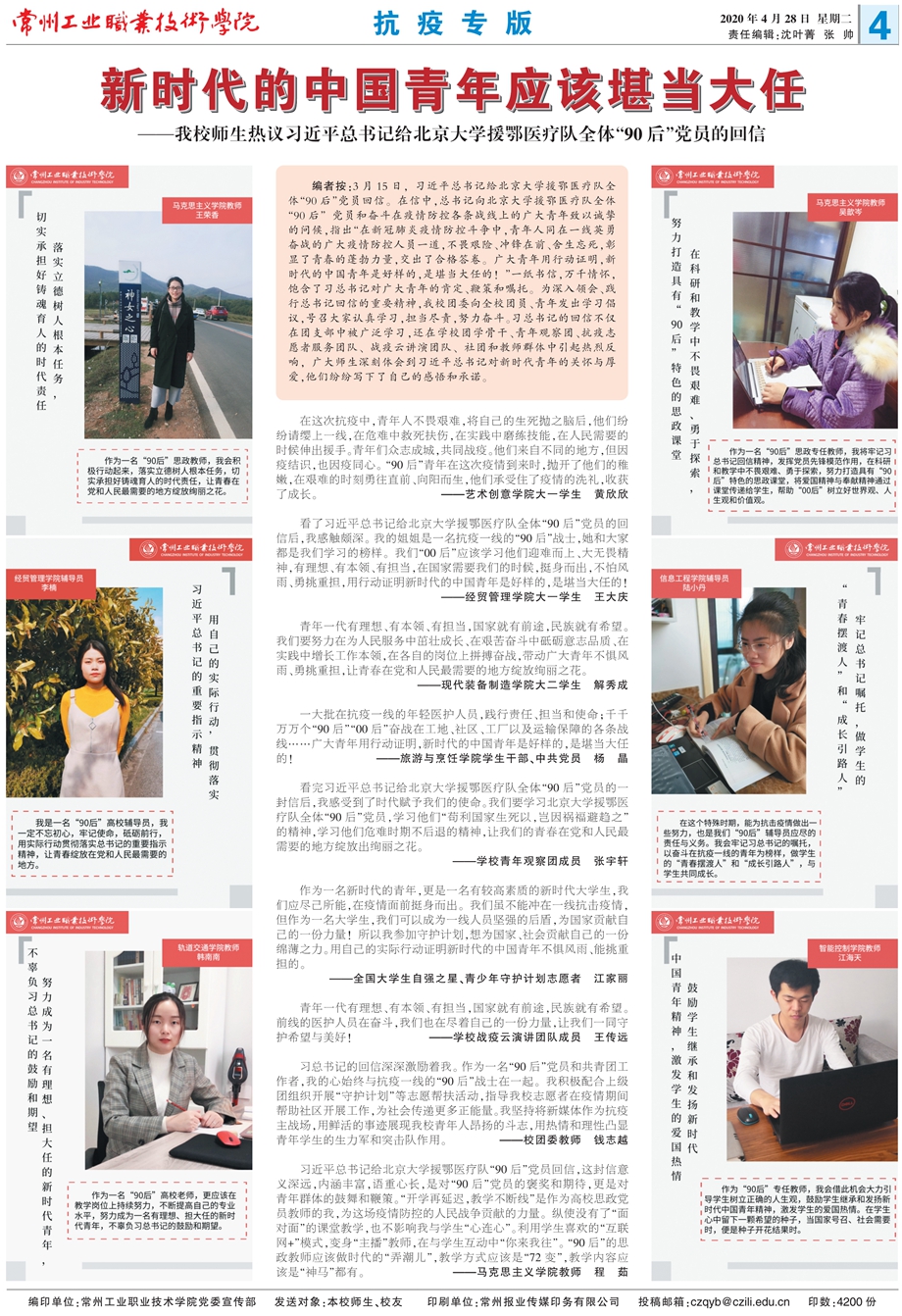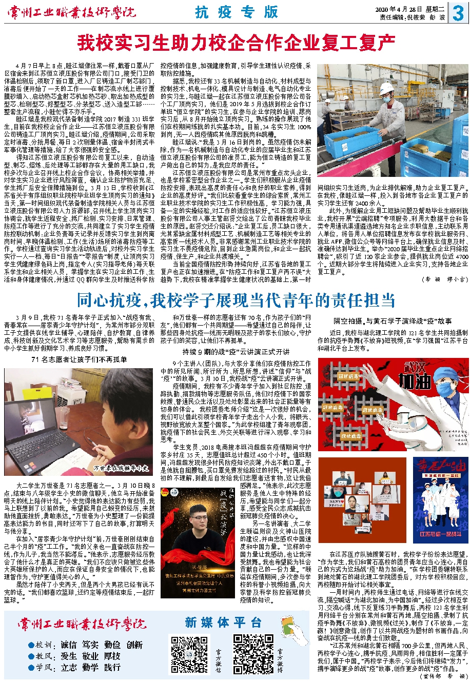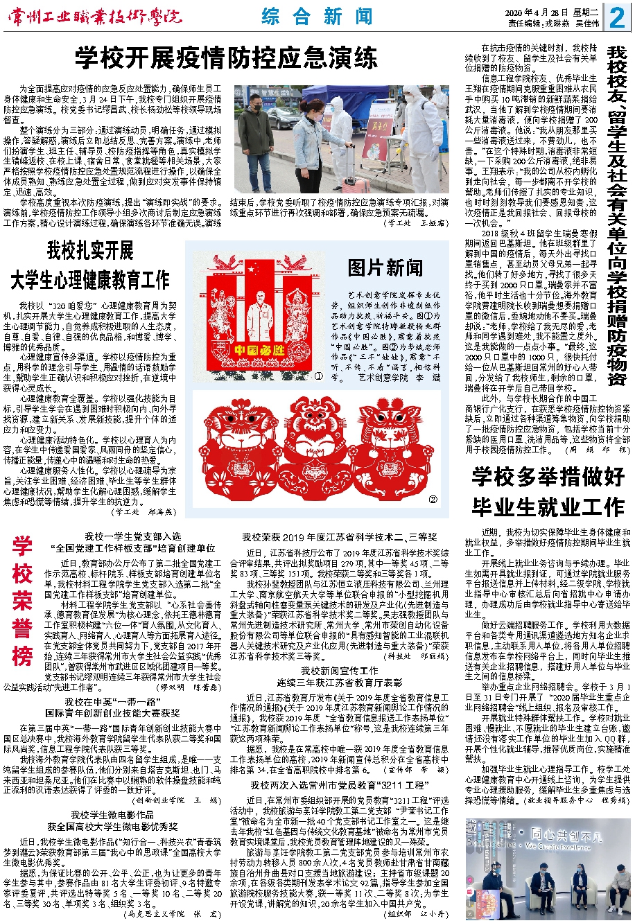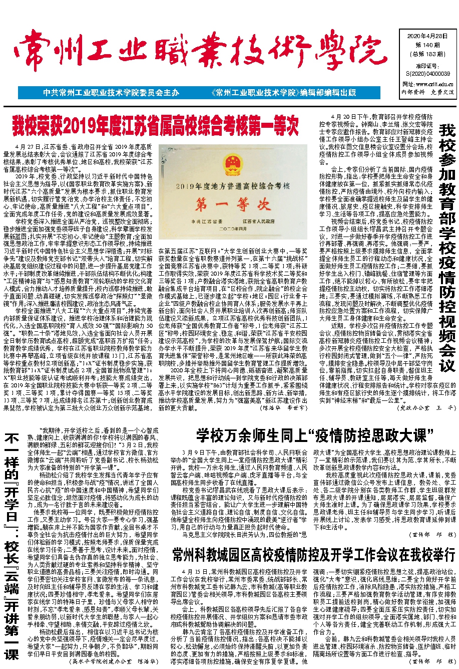 常州工業(yè)職業(yè)技術(shù)學(xué)院報2020年4月28日第140期總第183期