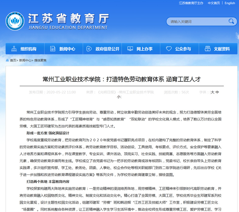 江蘇省教育廳-常州工業(yè)職業(yè)技術(shù)學(xué)院:打造特色勞動教育體系 涵育工匠人才