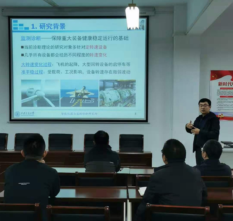 趙明的講座帶來(lái)了前沿的變工況定量化診斷技術(shù),令參與講座的博士們大開(kāi)眼界,領(lǐng)略了裝備智能診斷的新技術(shù)新工藝。機(jī)械裝備監(jiān)測(cè)與診斷是保障航空、航天、能源、化工等領(lǐng)域眾多關(guān)鍵裝備安全穩(wěn)定運(yùn)行的基礎(chǔ)。許多重要裝備例如風(fēng)電、高鐵等往往運(yùn)行于變速-變載的復(fù)雜服役工況,工況的連續(xù)變化使得傳統(tǒng)監(jiān)測(cè)診斷理論與技術(shù)不再有效,大量故障無(wú)法被準(zhǔn)確識(shí)別與預(yù)測(cè),給工業(yè)生產(chǎn)帶來(lái)了巨大的經(jīng)濟(jì)損失。