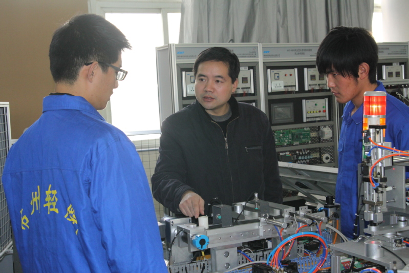 韓迎輝是我院93屆畢業(yè)生,在校學(xué)習(xí)的是塑料成型專業(yè),畢業(yè)后,先后在常州中化勤豐塑料有限公司和常州華威模具有限公司擔(dān)任過技術(shù)員、助理工程師、設(shè)備主管等職。在工作中,他逐漸對(duì)電氣自動(dòng)化的領(lǐng)域產(chǎn)生濃厚興趣,開始不斷鉆研相關(guān)知識(shí)與技能,成為公司的技術(shù)骨干。2005年他來院代課,2006年正式來院工作,成為電子系電氣自動(dòng)化專業(yè)教師。整整十二年生產(chǎn)一線的工作,既造就了他吃苦耐勞的精神,又讓他養(yǎng)成了一絲不茍、精益求精的工作作風(fēng)。到校工作之后,他將這種精神和作風(fēng)融入到了教學(xué)和教練之中。