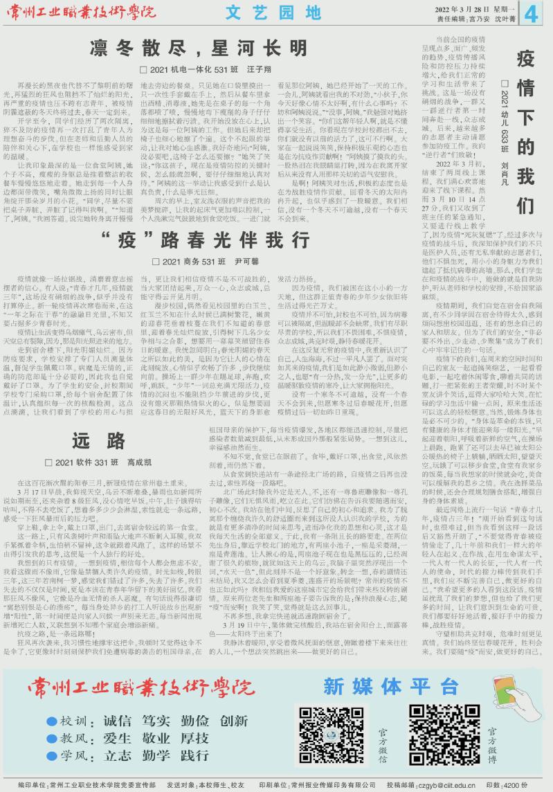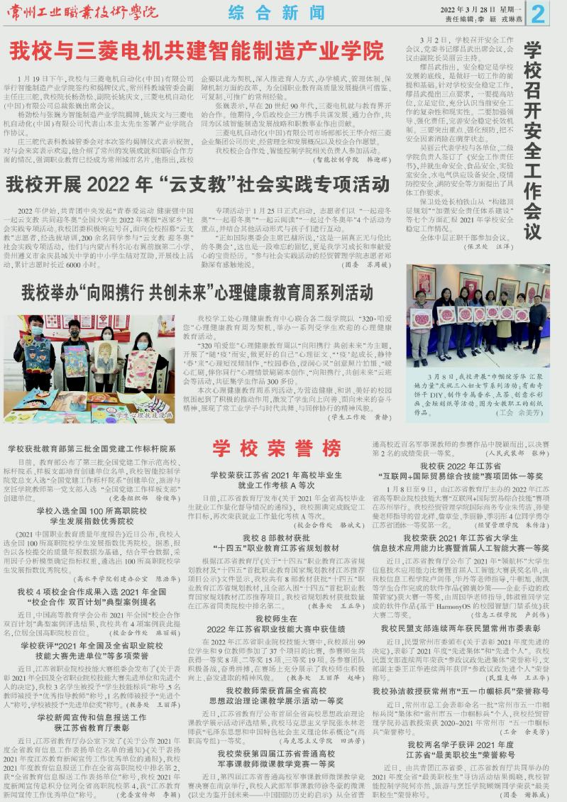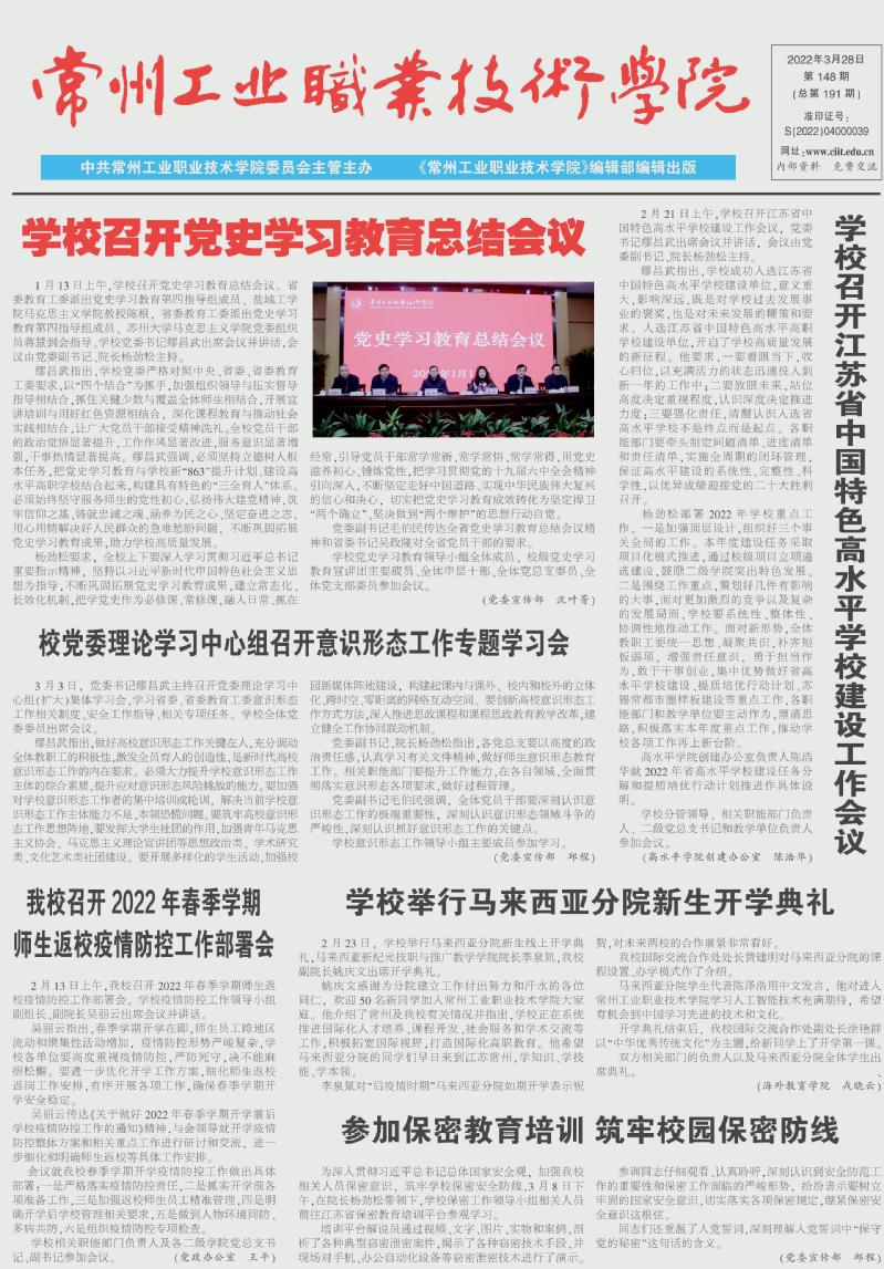 常州工業(yè)職業(yè)技術(shù)學(xué)院報(bào)2022年3月28日第148期總第191期