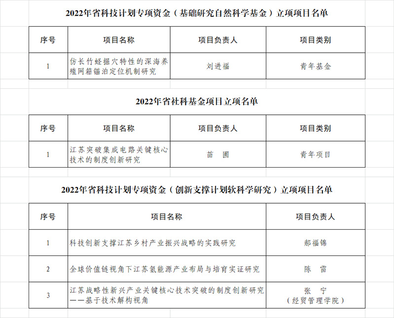 近日,繼我校張建根老師參與的“超薄玻璃物理鋼化及超薄光伏組件制造技術(shù)及裝備”項目榮獲江蘇省科學(xué)技術(shù)一等獎,高天友老師參與的“低能耗冷轉(zhuǎn)移印花深度開發(fā)關(guān)鍵技術(shù)及其產(chǎn)業(yè)化”項目榮獲江蘇省科學(xué)技術(shù)三等獎后,江蘇省科技廳又發(fā)布了2022年度省科技計劃專項資金(基礎(chǔ)研究自然科學(xué)基金)、省科技計劃專項資金(創(chuàng)新支撐計劃軟科學(xué)研究)立項名單,江蘇省哲學(xué)社會科學(xué)規(guī)劃辦公室發(fā)布了2022年度江蘇省社科基金項目立項名單,我校省部級項目立項再次取得新突破。