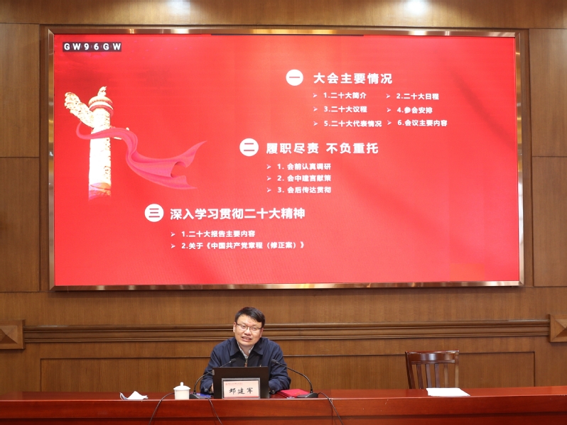 每次大會結(jié)束后,鄧建軍必回母校宣講,講述自己的黨代表故事。為了拉近和二十大的距離,鄧建軍的課件以圖片為主,再現(xiàn)了大會的流程和他親歷的細(xì)節(jié)?!?/span>大會的七天,于我而言,充實而美好,黨的二十大勝利召開,其實與每個人的未來都息息相關(guān)??瓷先ジ叽笊系臒嵩~,其實凝結(jié)著一種社會共識:人們期待一個更強大的中國,人們向往更美好的生活。”鄧建軍在宣講會現(xiàn)場感嘆,“堅持全面依法治國,推進(jìn)法治中國建設(shè)”“增進(jìn)民生福祉,提高人民生活品質(zhì)”“推動綠色發(fā)展,促進(jìn)人與自然和諧共生”一個個扎實有料的民生“大禮包”,實實在在地體現(xiàn)了“鼓勵共同奮斗創(chuàng)造美好生活,不斷實現(xiàn)人民對美好生活的向往”。
