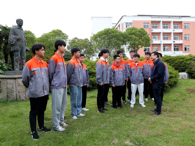 聽到學(xué)生的提問,鄧建軍停下腳步駐足思考了片刻,同學(xué)們也不由圍聚到他身邊。他們身后,年輕的建軍像矗立一旁,靜靜凝望著匠心的種子在更多年輕學(xué)子的心中生根發(fā)芽。