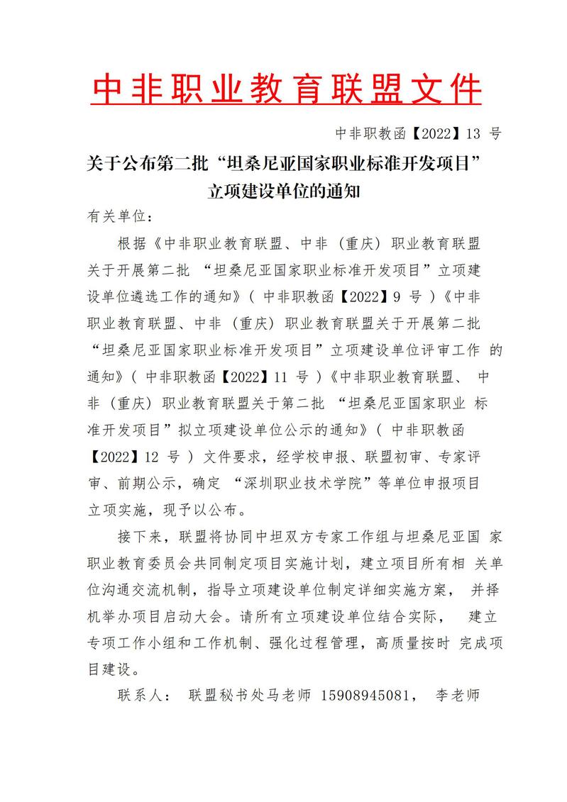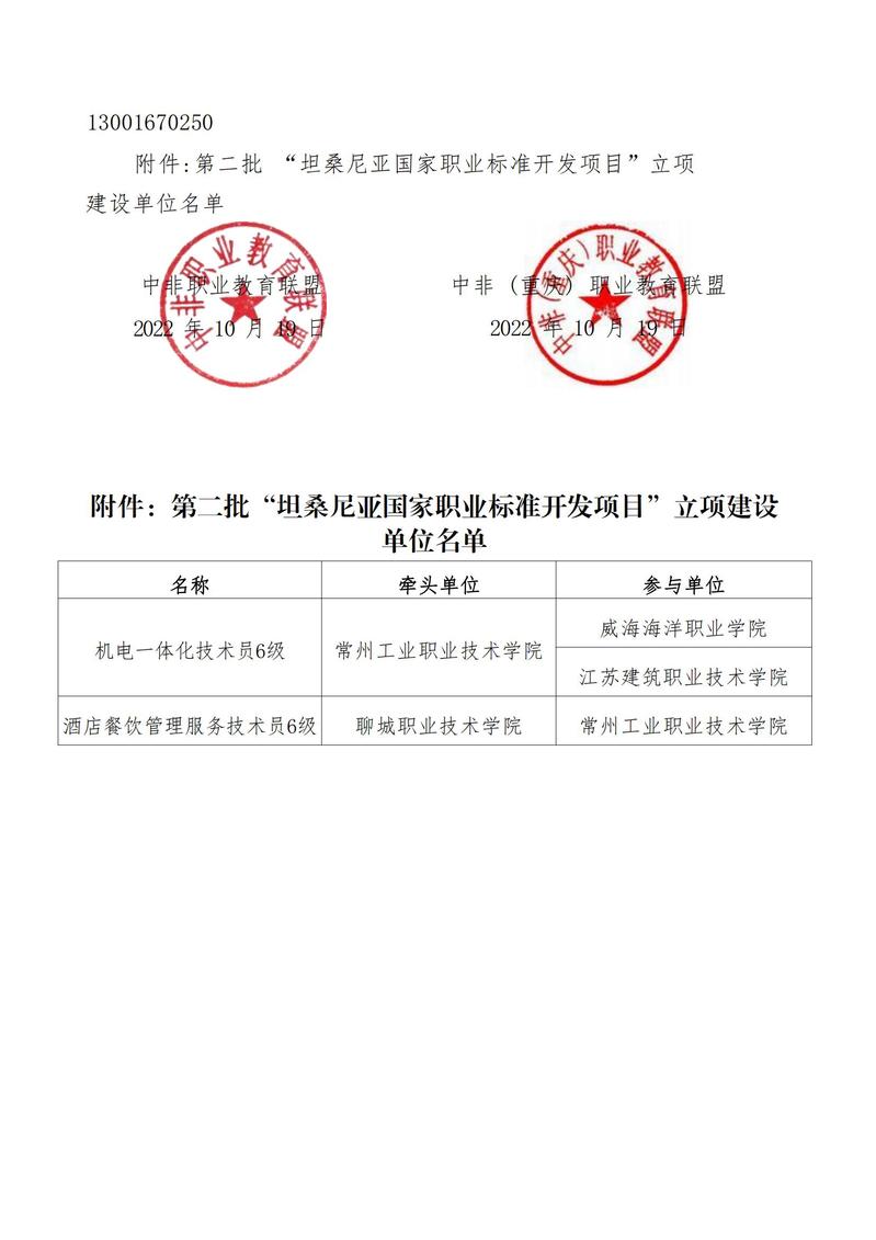 近日,根據(jù)中非職業(yè)教育聯(lián)盟《關(guān)于開展第二批坦桑尼亞國家職業(yè)標(biāo)準(zhǔn)開發(fā)項(xiàng)目立項(xiàng)建設(shè)單位遴選工作的通知》(中非職教函〔2022〕9號),教務(wù)處組織智能控制學(xué)院、旅游與烹飪學(xué)院申報。經(jīng)聯(lián)盟初審、專家評審、前期公示,“坦桑尼亞國家職業(yè)標(biāo)準(zhǔn)開發(fā)項(xiàng)目”第二批立項(xiàng)建設(shè)單位名單公布,我校機(jī)電一體化技術(shù)員6級、酒店餐飲管理服務(wù)技術(shù)員6級2項(xiàng)專業(yè)標(biāo)準(zhǔn)入選。