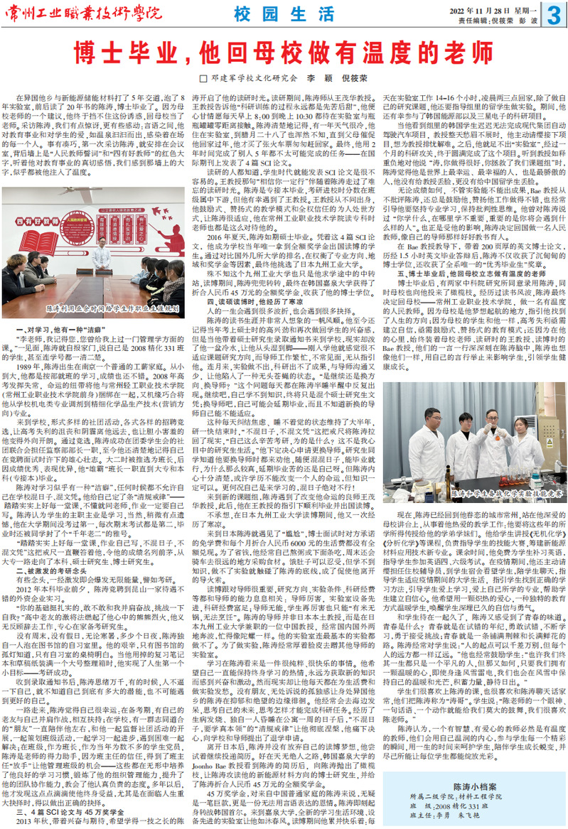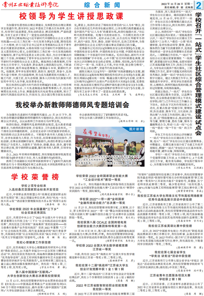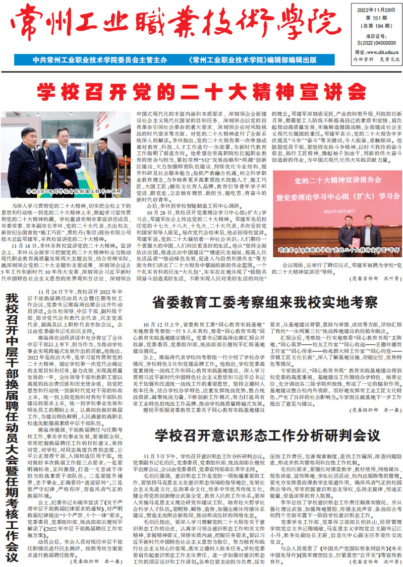 常州工業(yè)職業(yè)技術(shù)學(xué)院報(bào)2022年11月28日第151期總第194期