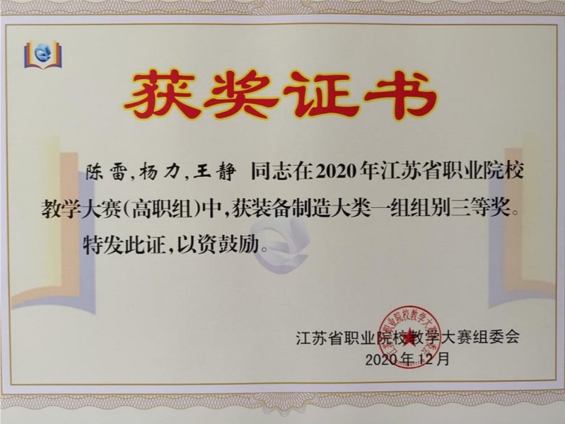 陳雷老師團(tuán)隊獲得江蘇省教學(xué)能力比賽三等獎