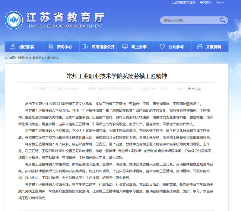 江蘇省教育廳-常州工業(yè)職業(yè)技術(shù)學(xué)院弘揚(yáng)勞模工匠精神