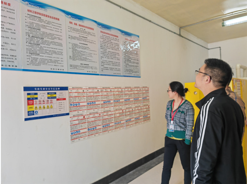 丁華峰帶隊(duì)一行先后來(lái)到機(jī)械與交通學(xué)院、旅游與康養(yǎng)學(xué)院、智能控制學(xué)院和材料工程學(xué)院等重點(diǎn)實(shí)驗(yàn)實(shí)訓(xùn)場(chǎng)所,實(shí)地檢查實(shí)驗(yàn)室日常管理、危險(xiǎn)化學(xué)品流轉(zhuǎn)使用、實(shí)驗(yàn)室消防安全等方面情況,并與實(shí)驗(yàn)室負(fù)責(zé)人進(jìn)行現(xiàn)場(chǎng)交流。