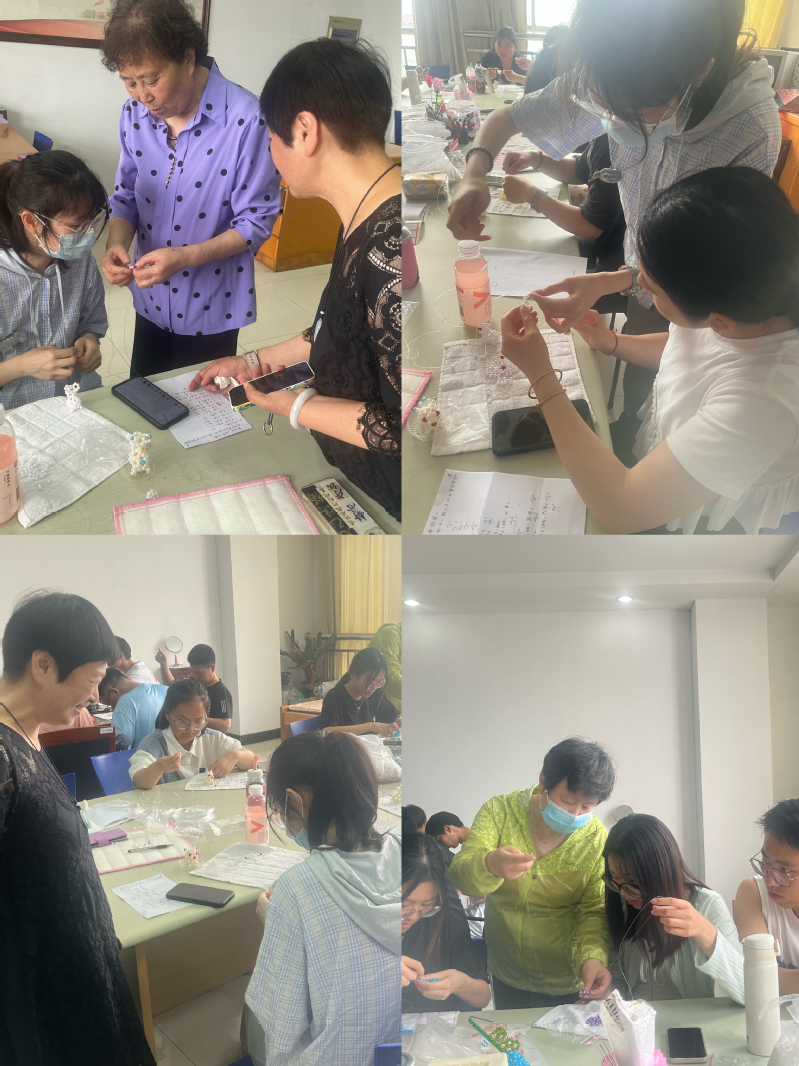 本次課程是以十二生肖——兔為例,張燏老師與同學們一起實踐探討,凝神屏氣,穿珠引線,不斷探索和總結著串珠操作中的小竅門,同學們相互協(xié)作交流,各自沉浸于動手實踐的喜悅之中,在動手實踐中感受傳統(tǒng)藝術的美,體驗勞動實踐帶來的樂趣。串珠活動,不僅能培養(yǎng)學生的動手實踐能力,還能不斷培養(yǎng)同學們感受美、理解美、鑒賞美和創(chuàng)造美的能力,讓同學們在制作串珠作品的過程中鍛煉創(chuàng)造能力、學習能力、實踐能力。